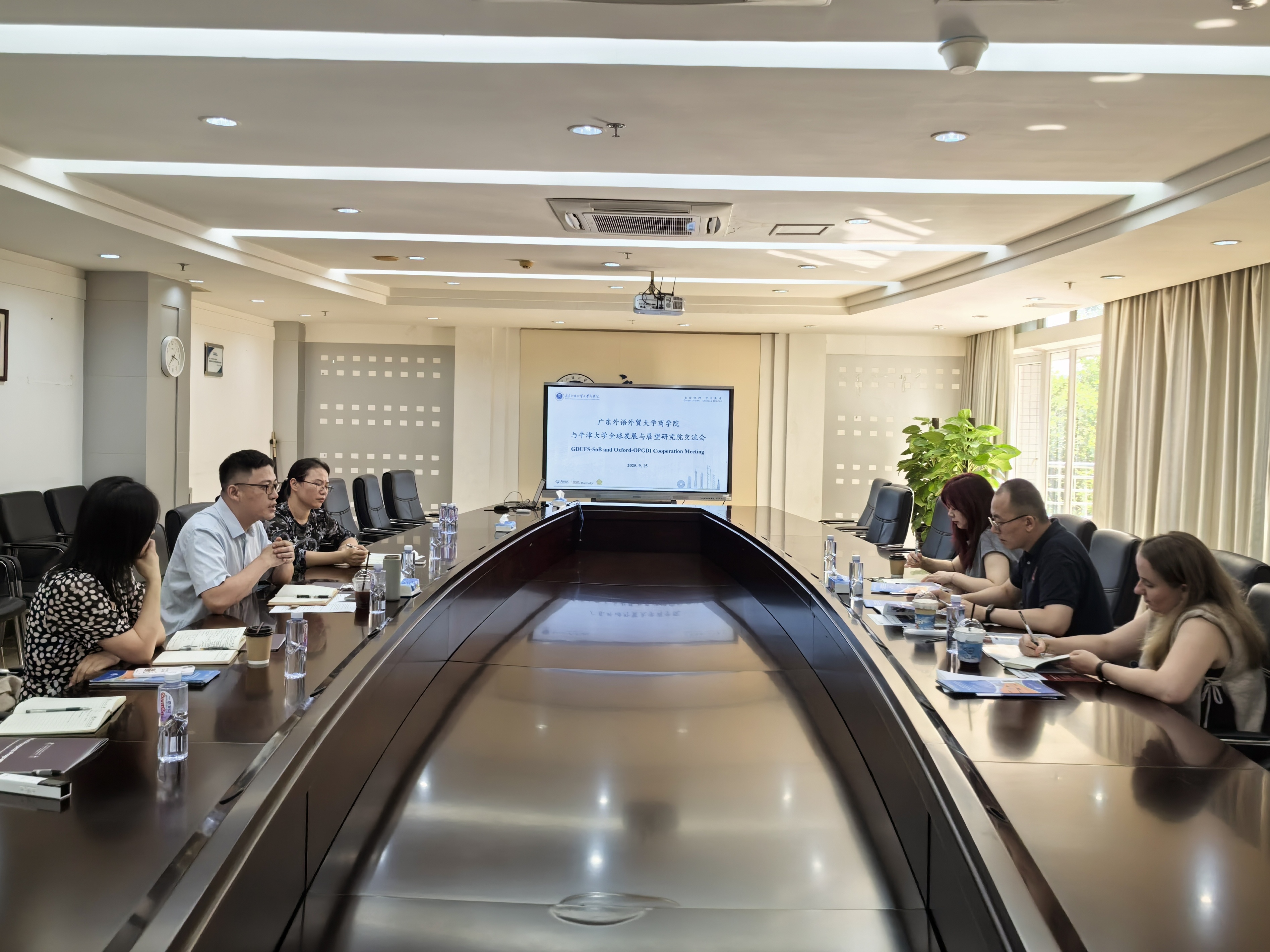 9月15日下午,牛津全球发展与展望研究院(OPGDI)外事联络官、牛津展望计划中国首席代表陆昱晨博士,学术推广负责人Ms Evie Brown,项目主任Ms Viola Liu来我院交流合作。广外太阳网集团tyc8722党委书记肖锋、副院长丁浩、国际事务办公室主任刘淑敏、主管王莹和焦月参加本次活动。会议由丁浩主持。