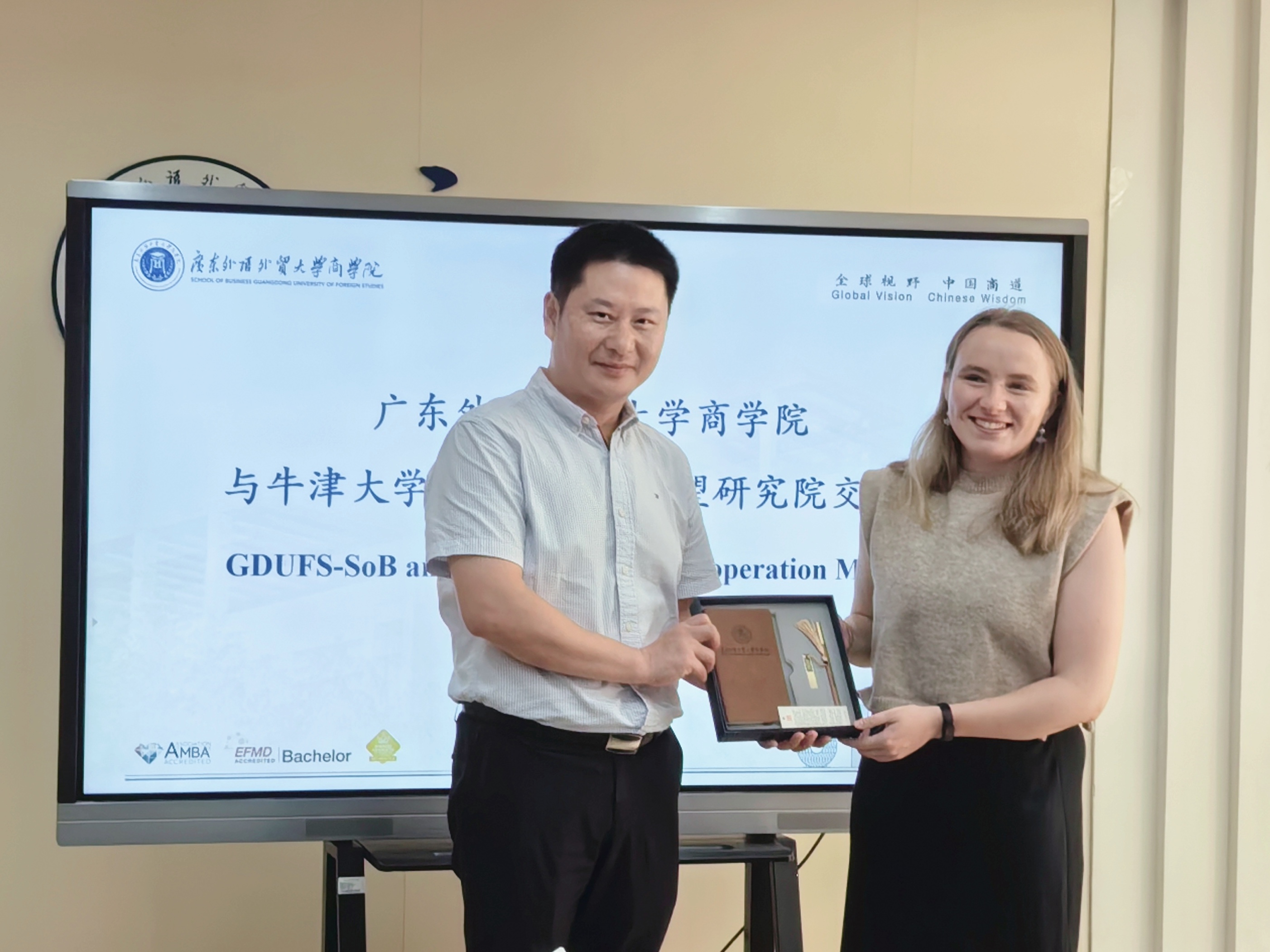肖锋对牛津全球发展与展望研究院一行的到来表示热烈欢迎,并代表学院赠送纪念品。他希望双方能够深入交流,在交流中共创机遇,推动更多高质量、深层次合作项目的开展。